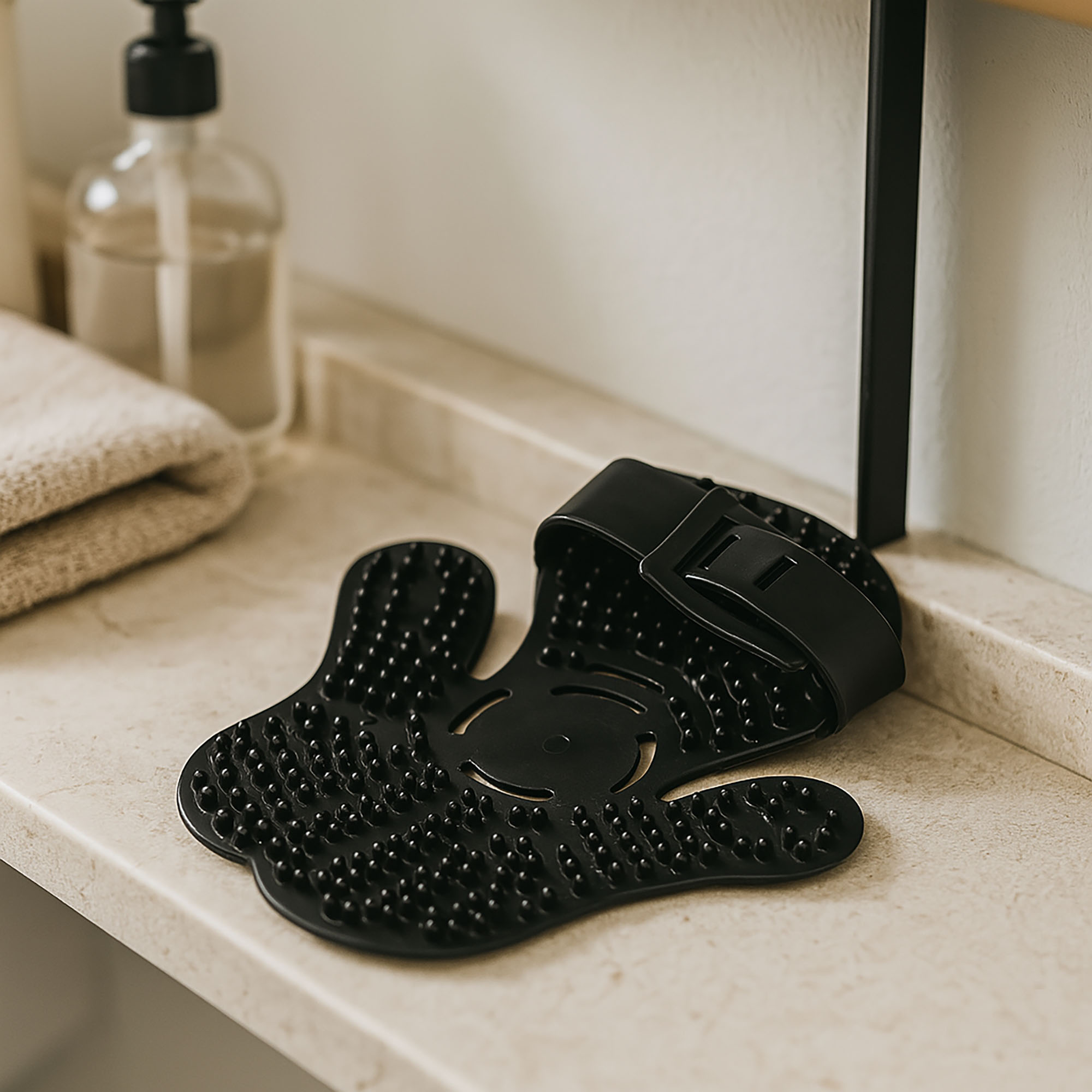 - Czyszczenie: Po każdym użyciu z kremami lub olejkami, natychmiast opłucz rękawicę ciepłą wodą z łagodnym mydłem. Pozostaw do całkowitego wyschnięcia. Nie używaj agresywnych środków chemicznych.