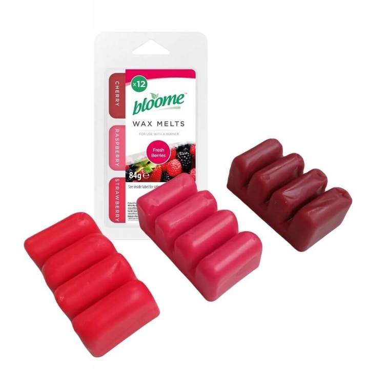 Zestaw 12 aromatycznych wosków do kominków o łącznej wadze 84 g, oferujący soczystą kompozycję zapachową wiśni, truskawki i maliny. Produkt idealnie nadaje się do domowej aromaterapii, wspierając relaksację i poprawę nastroju poprzez intensywne, owocowe aromaty lata.